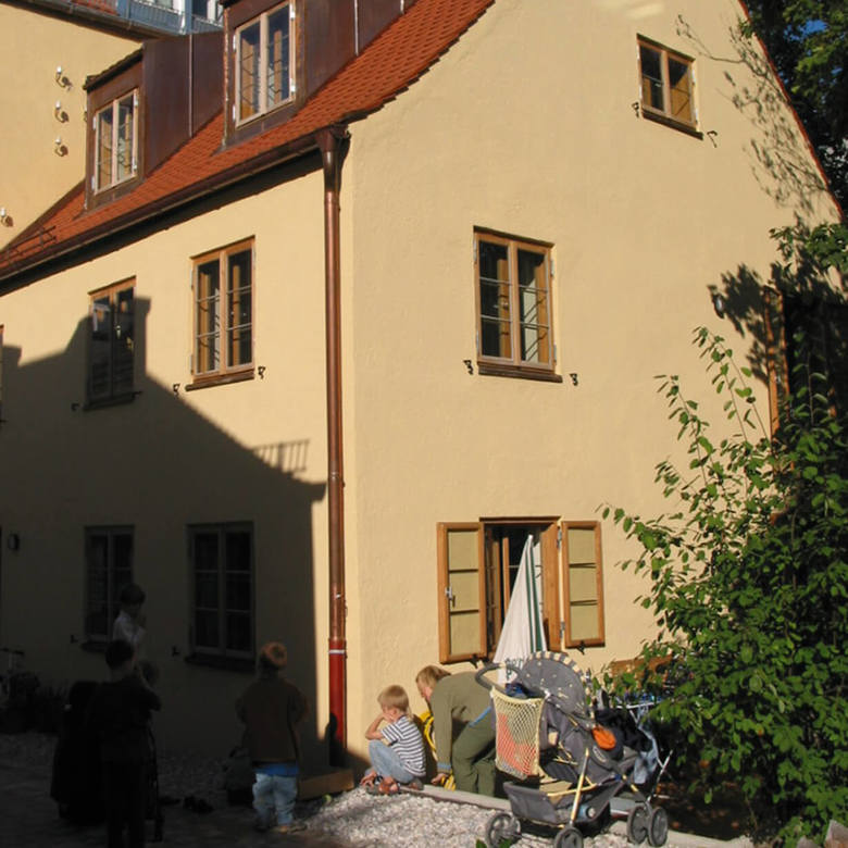 Fassadenpreis München 2004 der Landeshauptstadt München - Planungsreferat: "Die Außenhülle des aus der Mitte des 19. Jahrhunderts stammenden, spätklassizistischen Vorstadthauses wurde im Rahmen einer Gesamtinstandsetzung sorgfältig überarbeitet. Im Vordergrund der Bewertung steht hier die zur Typologie des Gebäudes passende handwerkliche Ausführung der Maßnahmen. Der Austausch der nach dem Krieg aufgebrachten Dachziegel gegen naturrote Biberschwanzziegel sowie die scheinbar grob ausgefallene Verblechung der Dachgauben stehen in der Tradition vorstädtischer bzw. herbergenartiger Bebauung. Auch die notwendig gewordene Erneuerung des Außenputzes einschließlich der Farbgestaltung zeigt eine handwerkliche Ausführung, die als gelungen zu bezeichnen ist. Die zweiflügeligen Fenster mit nach außen aufschlagenden Winterflügeln ersetzen in der historisch richtigen Konstruktion und Erscheinungsweise Fenster der 1950er Jahre und tragen damit wesentlich zu dem auch ursprünglich schlichten Ausdruck des Kleinhauses bei. Insgesamt eine Instandsetzung, die vor allem den stark reduzierten Bestand der Haidhauser Herbergen und Vorstadthäuser durch einen nachhaltig verbesserten Repräsentanten wahrt."