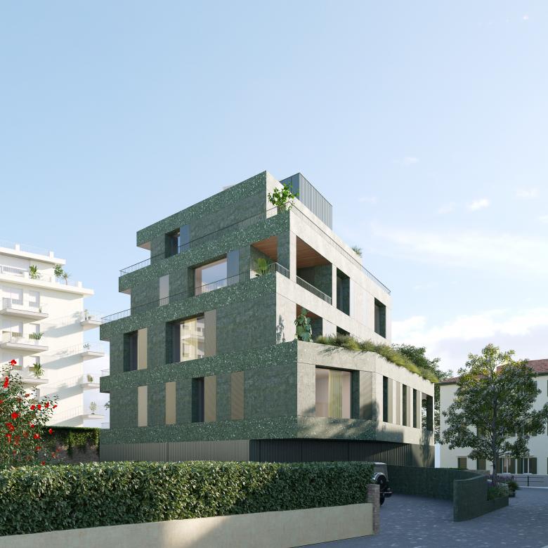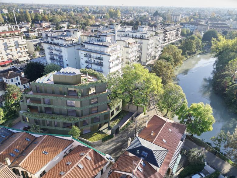 Il progetto per un nuovo edificio residenziale a Treviso si sviluppa su un lotto di terreno situato nelle vicinanze del fiume Sile. L'idea progettuale ha avuto l'obiettivo di valorizzare in modo armonioso il contesto verde circostante, integrando terrazzi privati per ogni unità e spazi comuni pensati per la comunità di residenti.