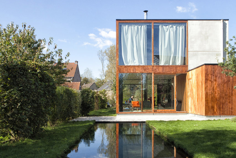 This OYO story takes you to Wijgmaal, where a single family house is conceived as a place without boundaries. Due to the use of steel structure, you will experience the plan as open. The garden is the living room, the small lake the bathroom. The kitchen you’ll find next door. OYO chose for a minimalistic approach, omitting fancy details. There is no need of ornament. This and others choices result in a low budget home that sticks perfectly to the basic idea of living, functioning very open minded. Every room in this house is connected and ready to absorb the creativity of its residents.