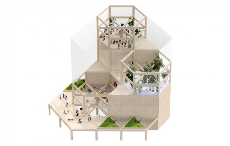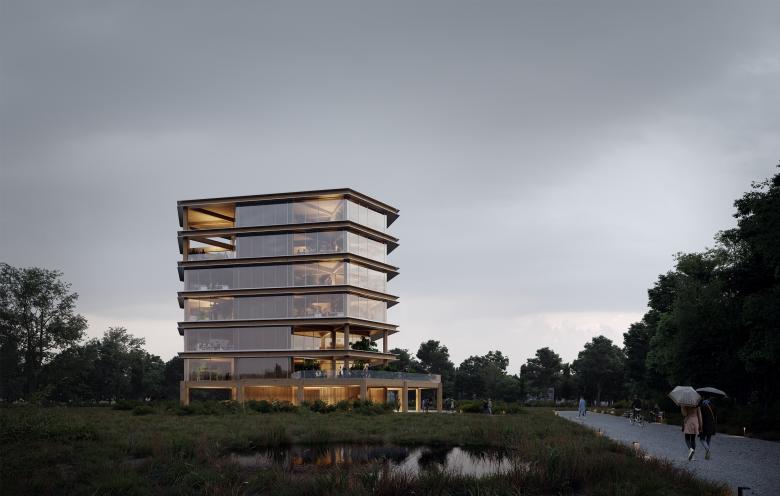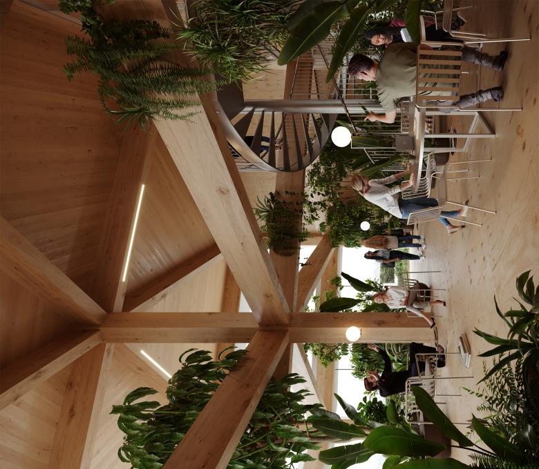 Design proposal for a new creative incubator, an unconventional office space with a maximum focus on atmosphere, flexibility, ease of use and efficiency. We translate Leiedal's sustainable philosophy into this hybrid entity that is inviting and adaptive. A dynamic and timeless platform where the user is central and where green and building form a symbiosis within a sustainable philosophy.