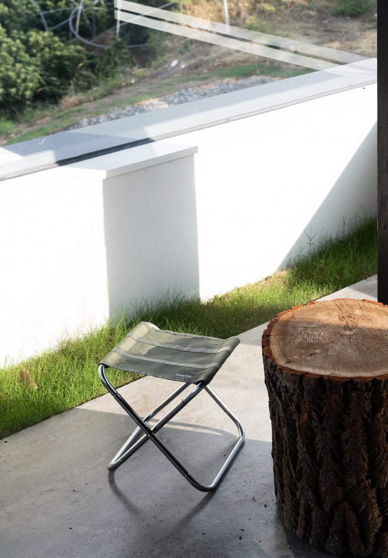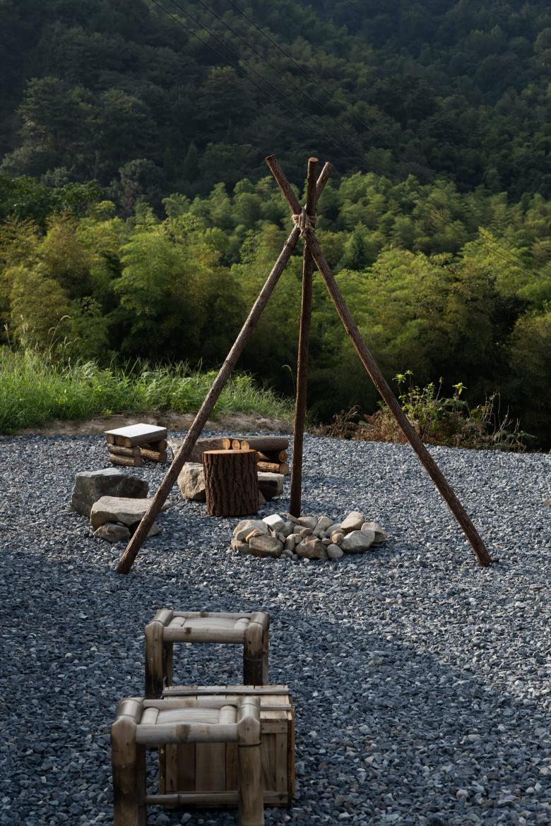 基于生态保护和修复的自然理念,室内外的家具、门和置物架均采用了当地的竹木材料进行现场制作。当阳光投射在这些风化后的老木材上时,展现出了特别自然的纹理和生动的颜色。在细腻和粗犷之间需要取得一种平衡,过于密集的细节可能让人感到不适,而过于粗糙的表面则可能显得简陋。因此,精确把握这种度和关系非常重要,同时,建筑师的个人感受也是关键因素,因为他们的每个决策都将影响建筑完成后的整体氛围。