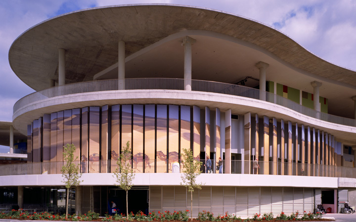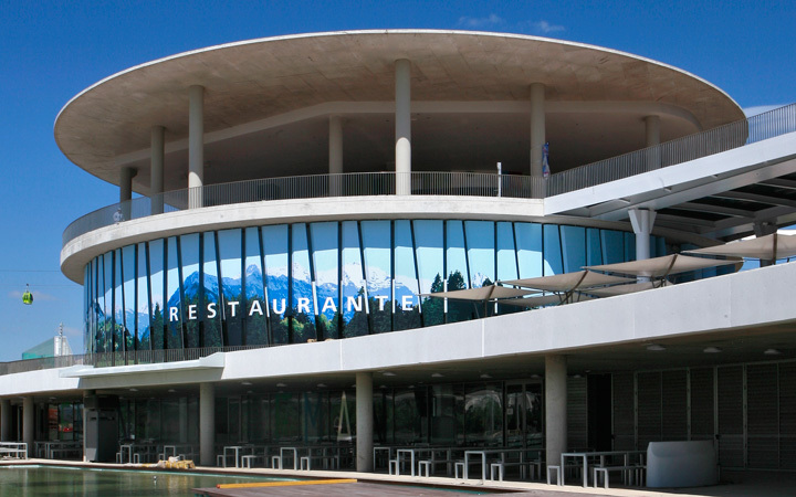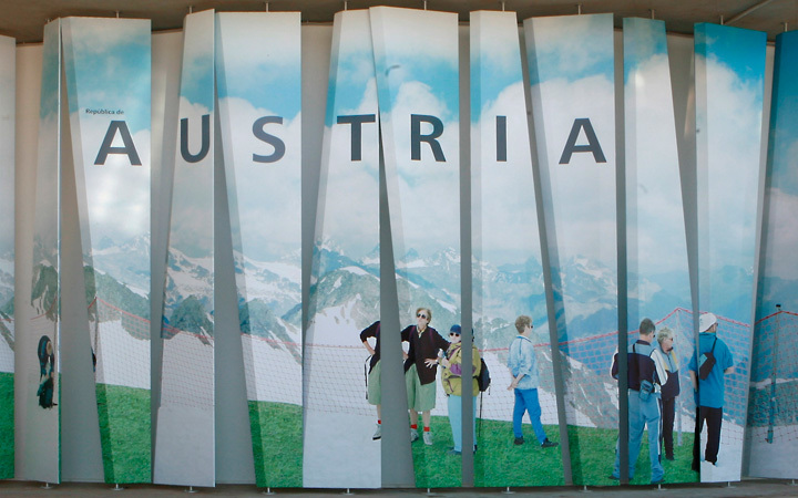 Drehbare Lamellenfassaden sind das Wiedererkennungsmerkmal von zwei Themenpavillons auf der Expo 2008 in Zaragoza. Sie bieten Schatten und individuellen Einlass. Je nach Betrachterabstand ändert sich ihr Erscheinungsbild. Die trapezförmigen Lamellen des Pavillons Berge zeigen Winter- und Sommeransichten der Bergländer Schweiz, Österreich, Pakistan, Andorra und Afghanistan. Am Pavillon Oasen schließen sich einzelne Farbflächen zu Oasen- und Wüstenlandschaften zusammen. Eine Referenz an das Pavillon-Restaurant sind Gewürznamen, die den Farbflächen zugeordnet sind.