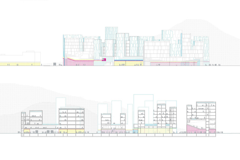 195 apartments, 14,370 m2 retail and public program, 10,450 m2 offices, 8,500 m2 cultural and social facilities, 19,200 m2 underground parking