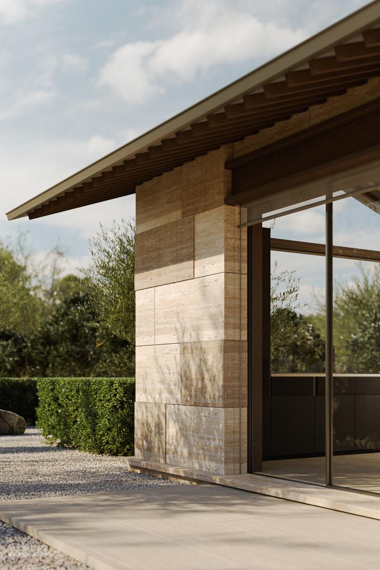 Studioforma's architecture interprets living as a quiet retreat – characterised by light, shadow and tectonic precision. Solid stone walls give the building its monolithic appearance, while strategically placed openings create a dialogue between inside and outside.
