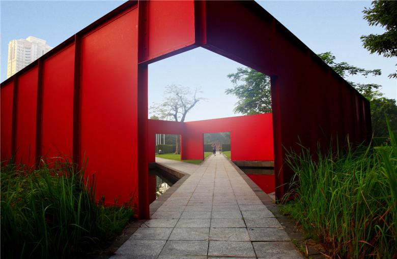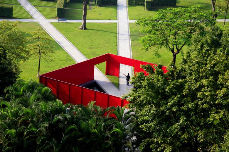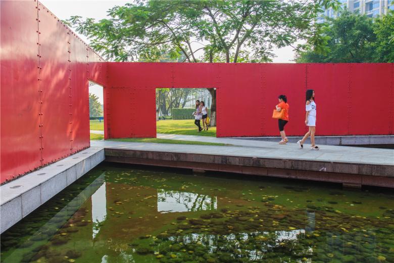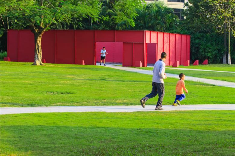 From the preservation of vegetation along the old lake shore, the protection of old banyan trees along the river side, the reuse of rails, the decoration of water towers and the placing and reuse of dilapidated machines, to the creation of the red box, all original required elements are carefully designed to fulfill the design intention set forth at project inception.