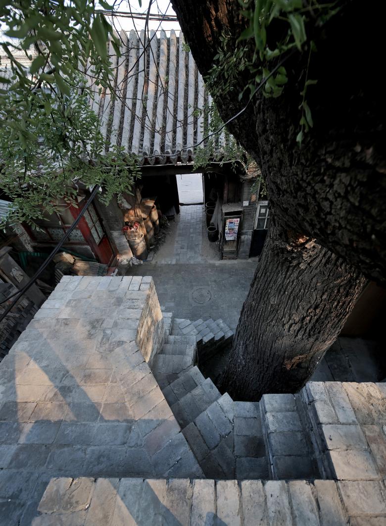During the Cultural Revolution, more than a dozen families lived here in extremely cramped conditions. To expand the space available, everyone built their own kitchen in the courtyard without a plan or concept. These self-built, small architectures were created with found materials, which shaped the informal character of the district in a collage with the existing structures.