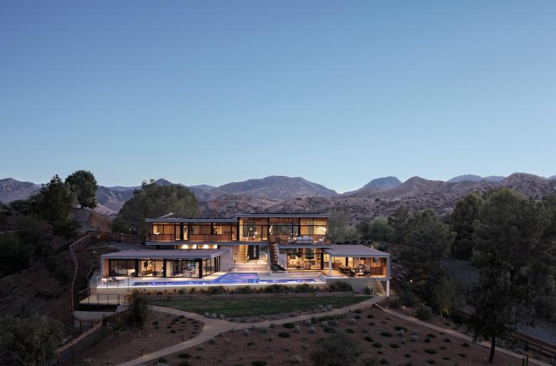 In response to the challenge of creating spaces to view, measure, and engage with the diversity of the surrounding semi-arid landscape, the Arroyo Oak House is open and transparent, immersed in natural light and visually integrated with the surrounding Sierra Pelona Mountains. Optimizing the connection to this unique topography, multiple interlocking program-specific pavilions are oriented across the site. The placement and overlap of these pavilions results in varying scales of gardens, terraces, and decks, encouraging landscape elements to literally and perceptually permeate the home’s interior.