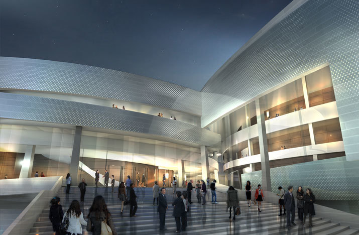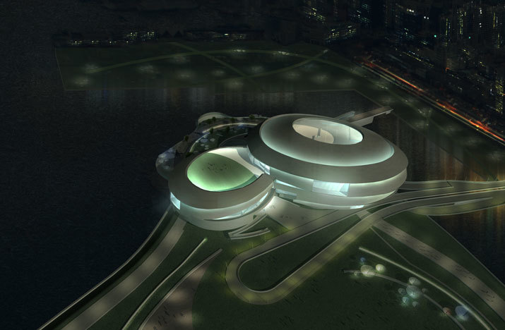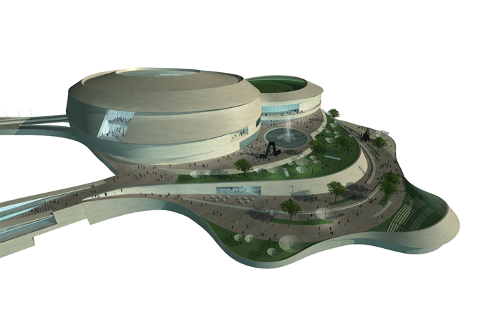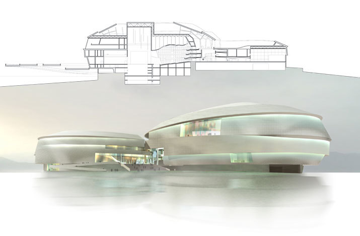 Translated into a series of landscapes that foreground the public’s experience of the water, literal and phenomenal infrastructural bands are deployed to accommodate activities such as shopping, recreation, arts programming, beach access, leisure, dining, and various maritime functions.  The creation of these terrains and their integral relationship to the architecture of the site, serves to reference the adjacent mountainous geography, acknowledge the reclaimed nature of the constructed island, reinforce the free and open access to the coastal edge and extend the inherent diurnal nature of performing arts complexes towards full time use. In addition, the surrogate terrain serves as a future buffer to potential storm surges mediating the space between the sea and the opera complex.