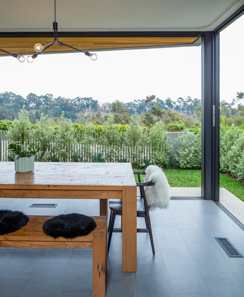 Rife with opportunities to lounge in the golden sunlight of the Pacific Palisades, the Wrap Recess house manages to promote outdoor living without sacrificing the privacy of its inhabitants.