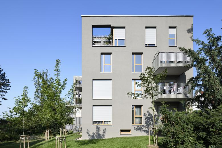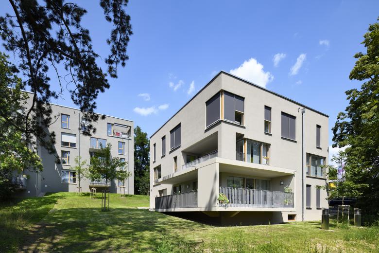 Die GWS Forchheim lobte einen eingeladenen Wettbewerb für eine neue Wohnbebauung und Tagespflege in der Mayer-Franken-Straße in Forchheim aus. Das Gebäudeensemble steht auf einem parkähnlichen Grundstück mit wertvollem altem Baumbestand an der Mayer-Franken-Straße, einer Teilfläche des „Hornschuchparks“. Das Ensemble besteht aus drei Wohngebäuden (EOF-Gebäude, Haus A und B) und dem Gebäude der Tagespflege. Östlich des Grundstückes befindet sich das Jörg-Creutzer-Heim, im Westen schließen kleinteilige Wohngebäude an. Die Höhenstaffelung der Gebäude entlang des Hanges und die pavillonartige Struktur der viergeschossigen Baukörper ermöglichen vielschichtige Ausblicke und Belichtungsmöglichkeiten der Wohnungen. Die lockere Baustruktur, die angemessene Größe und Proportion der Baukörper und die Höhenstaffelung entlang des Hanges schaffen einen attraktiven Außenbereich. Der 4-geschossige Neubau der EOF-Wohnungen bildet den Auftakt des locker am Hang liegenden Gebäudeensembles. Das Gebäude besteht sowohl in Ost-/West- als auch in Nord-/Süd-Richtung, aus zwei zueinander leicht versetzten, annähernd quadratischen Baukörpern. Das 4-geschossige Gebäude ist in Ost-/West-Richtung in der Höhe gestaffelt und orientiert sich am natürlichen Geländeverlauf. Die Baukörperpaare werden über ein gemeinsames Treppenhaus erschlossen. Das Treppenhaus ist im Split-Level-System an die Gebäudeebenen und das Gelände angepasst. Der mittig im Treppenhaus angeordnete Personenaufzug verbindet alle Geschosse barrierefrei. Im Neubau befinden sich 16 Wohneinheiten. Die Grundrissvarianten reichen von Ein- bis Vier-Zimmer-Wohnungen. Die Wohnungsgrößen orientieren sich an den Vorgaben für geförderten einkommensorientierten Wohnraum.