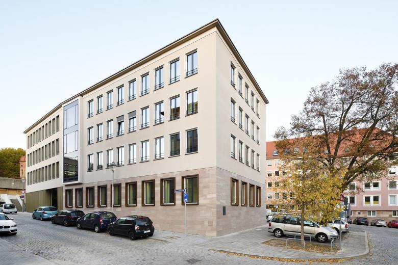 Das Gebäude des Kirchengemeindeamtes in Nürnberg aus dem Jahr 1955 bis 1958 wurde umgebaut und erweitert, um die Verwaltungen der Gesamtkirchengemeinde Nürnberg räumlich zu vereinigen. Die Nutzungen im umgebauten, energetisch sanierten und erweiterten Gebäude sind ein Gemeindesaal, Besprechungs- sowie Büroräume. Der durch zusätzliche Dienstleistungen wachsende Flächenbedarf wurde über einen Anbau nach Norden ausgeglichen. Das viergeschossige, im Grundriss T-förmige Bestandsgebäude mit Walmdach wirkt nach Westen wie ein Solitär im Stadtraum. Das Gebäude unterliegt im Bestand einer Mischnutzung aus Gemeindesaal, Flächen der Kirchengemeinde St. Egidien, Büroflächen und Wohnungen. Das Erscheinungsbild des Bestandes ist geprägt durch eine bauzeitlich typische Lochfassade mit Putz und einem Sockel aus Sandstein. Das Walmdach mit zimmermannsmäßigem Dachstuhl und kleineren Bestandsgauben wurde mit einer Biberschwanzdoppeldeckung versehen. Das grundsätzliche, ensemblegeschützte Erscheinungsbild wurde beibehalten. Der Neubau erhielt eine Lochfassade mit Aluminiumfenstern und in den Obergeschossen ein geputztes Wärmedämmverbundsystem. Die Gesamtfassade des Bestandsgebäudes wurde energetisch saniert. Der Sockelbereich wurde fassadenbündig mit Sandstein verkleidet, die erdgeschossige Fassade des Neubaus wurde zur Abschirmung der Stellplätze zum Straßenraum mit Aluminiumlamellen versehen. Die ehemaligen Loggien wurden verglast, so dass die dahinter liegenden Besprechungsräume Tageslicht erhalten.