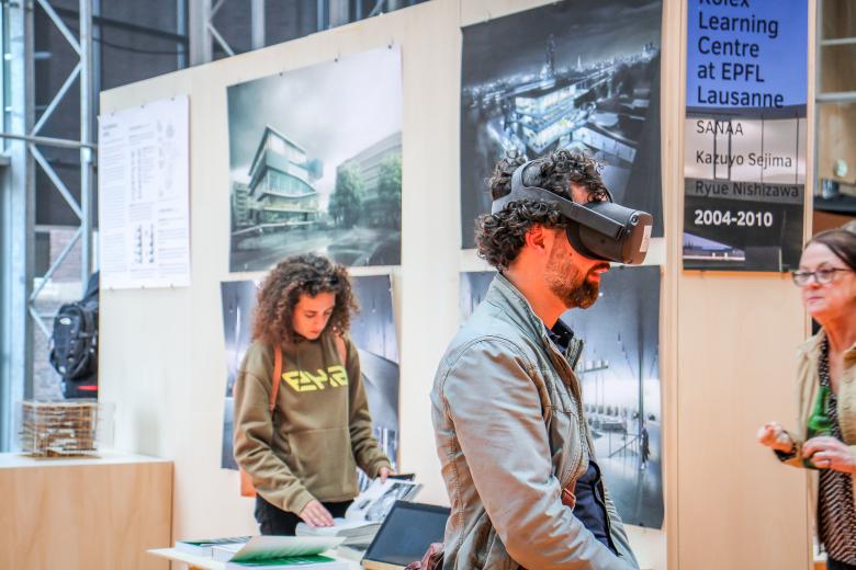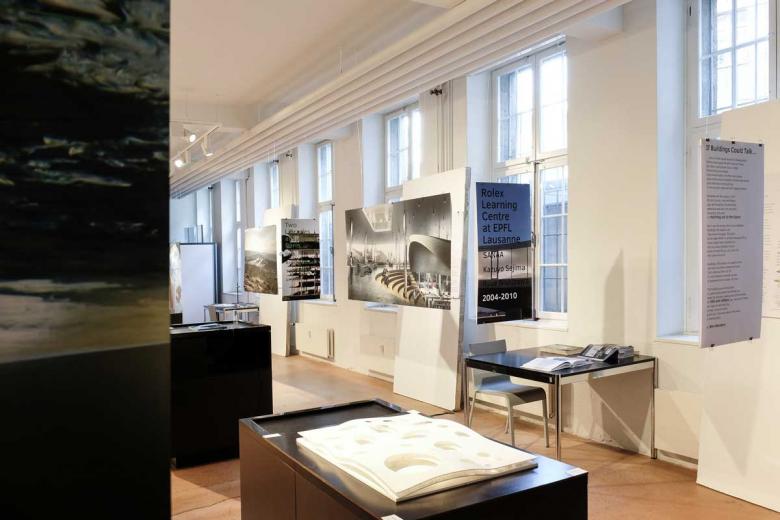 Wie entwerfen Architekt*innen eigentlich Landschaften? Diese Frage stellte sich Daniel Jauslin für seine Doktorarbeit, die er 2019 an der TU Delft erfolgreich verteidigen durfte und die das Gerüst der Ausstellung bildet. Anhand von drei Fallbeispielen werden Aneignungen von Entwurfsstrategien der Landschaft in der Architektur analysiert. Visualisierungen und ein VR Rundgang zeigen, wie Rem Koolhaas‘ ungebauter Jussieu-Entwurf für zwei Universitätsbibliotheken in Paris von 1992 in gebauter Form ausgesehen hätte. Der Entwurf arbeitet mit gefalteten Geschossebenen, die eine innere Stadtlandschaft ausbilden. Peter Eisenman entwarf 1999 die Kulturstadt in Santiago de Compostela in einem Prozess der landschaftlichen Schichtung. Gezeigt wird neben einer zeichnerischen Analyse auch ein Vortrag des amerikanischen Architekten über das Projekt und ein Vorschlag für die Nutzung der ungebauten Oper als Baumschule von DGJ Landscapes. Die 3D-Filminstallation von Wim Wenders des Rolex-Learning-Centre der EPF Lausanne präsentiert die Leselandschaft der Universitätsbibliothek. Die Architekten SANAA entwickelten ein Gebäude, bei welchem die innere und äussere Landschaft eindrucksvoll miteinander verschmelzen, was auch in einem spektakulären Wettbewerbsmodell von 2004 zu sehen ist.