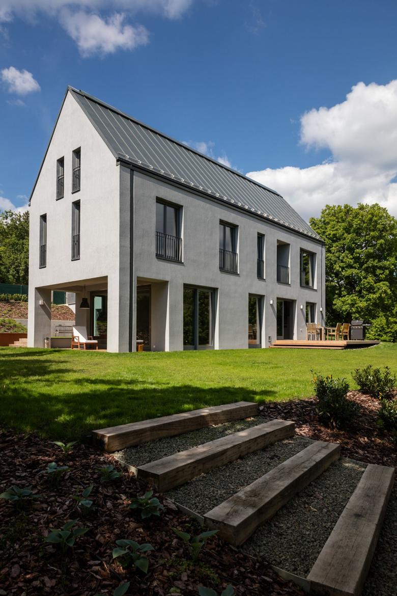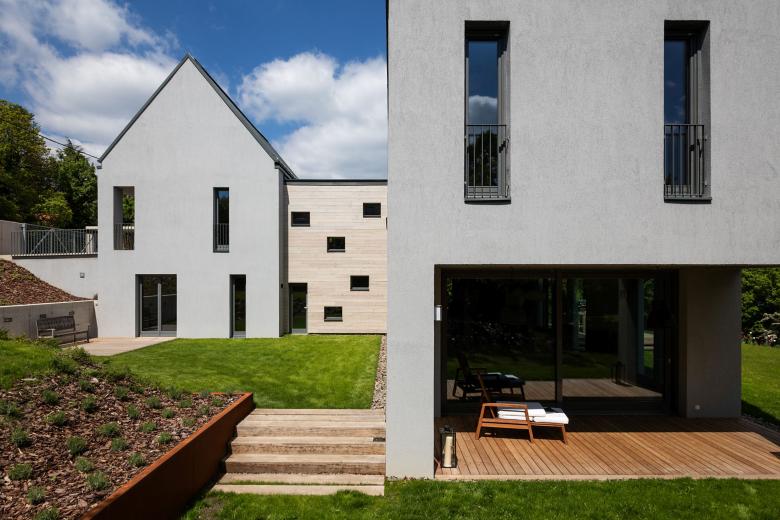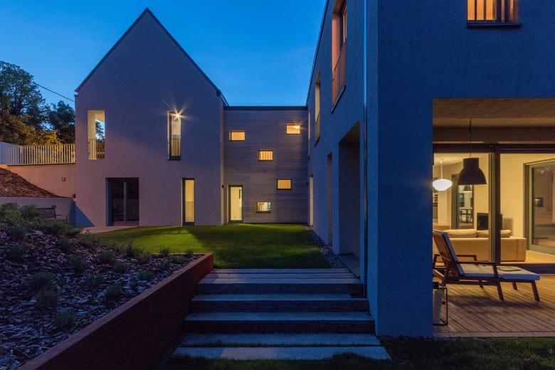 This family house project located in a green belt area of Buda hills is called „Under two roofs”. The hillside overlooks the Danube and its surroundings. They started to build in this neighbourhood in the 18th century, therefore the architectural surroundings contain a variety of classicist and romanticist villas, modern family houses and swiss type residences as well.