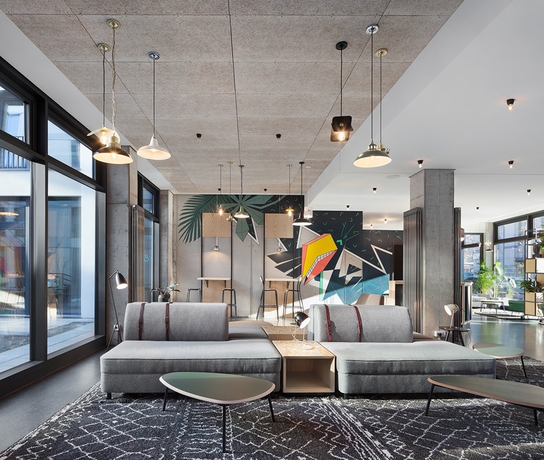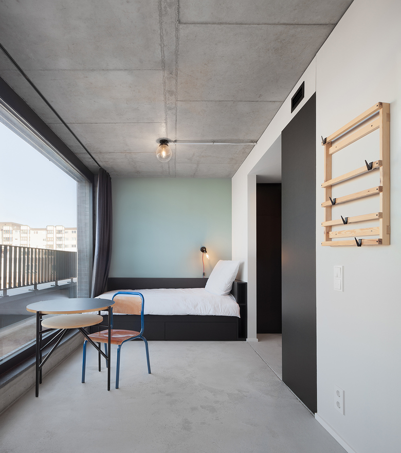 Im Erdgeschoss wurden neben den Eingangs- und Lobbybereichen für die Bewohner auch Einzelhandelsflächen geplant. Ziel war es, eine hotelähnliche Erfahrung für die Studenten und Bewohner zu schaffen, bei der sich alle alltäglichen Bedürfnisse im Gebäude befriedigen lassen. Das Konzept sieht daher eine große Loungefläche im Eingangsbereich vor, in der sich die Studenten treffen können und die Möglichkeit haben, neue Kontakte zu knüpfen - „community building“. Jedes Zimmer verfügt über eine eigene Küchenzeile und ein Bad in ansprechendem modernen Design.