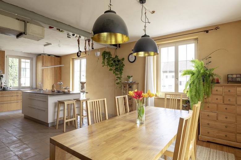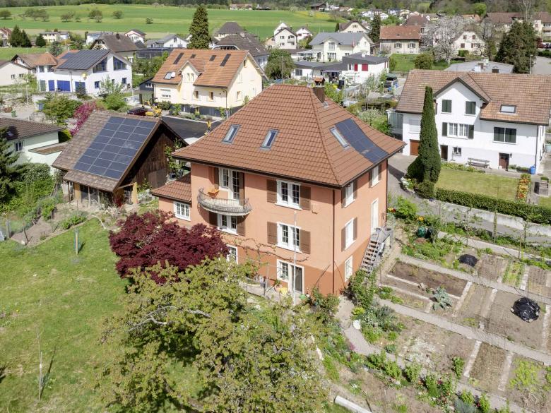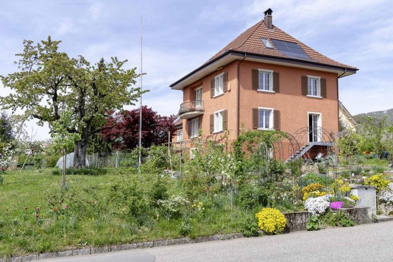 Was äusserlich nach einem gewöhnlichen Haus aussieht, birgt zahlreiche unkonventionelle Lösungen: Von der Komposttoilette und den selbst gebauten Solarkollektoren über den überdimensional grossen Warmwasserspeicher und von der Kunst am Bau über die Hochleistungsdämmung bewiesen Bauherren und Planer viel Mut beim Einsatz innovativer Materialien und Produkte. In Kombination mit zukunftsweisender Haustechnik wurde der Umbau mit dem Minergie-Label zertifiziert.