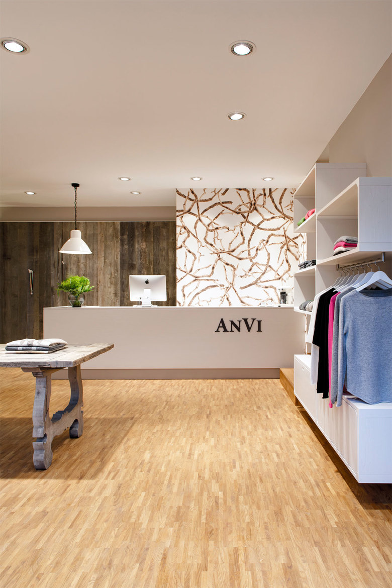 Cashmere und Landluft, Eleganz und Gemütlichkeit, alles in einem, alles zusammen vor den Toren Münchens. Das Bewusstsein für die schönen Dinge im Leben endet nicht an der Stadtgrenze. Und so wird ein Fashion Shop kreiert, der diese Dinge zusammenbringt: ein alter Holztisch aus Holland, Designertapeten aus Italien, Hirschgeweihleuchten aus den USA und solide, feine Schreinerarbeiten aus Bayern. In Kombination