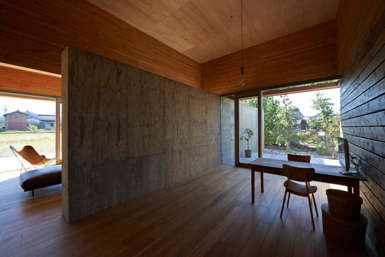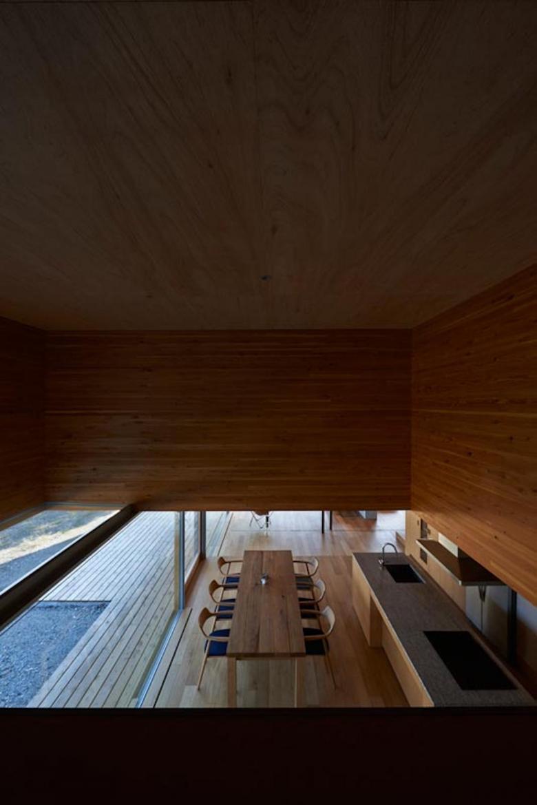 それは豊かな周辺へと伸び行くよう離散的に配されたRC壁造による解放的な空間の上層に、これとは無関係に木壁造による内向的で程よいスケールの空間をストンとのせることで現実化されたが、これは一枚の平面に2種類の異なる"通り芯"の体系が重ねられたことを意味している。"通り芯"が"通っていない"という、これまでの建築ではありえなかつたことが起こるわけだが、これによって、質の異なる上下の空間は跨ぎあい始め、複数の結びつきや光の干捗が生じ,単調ではない豊かな現象が発生することになった。