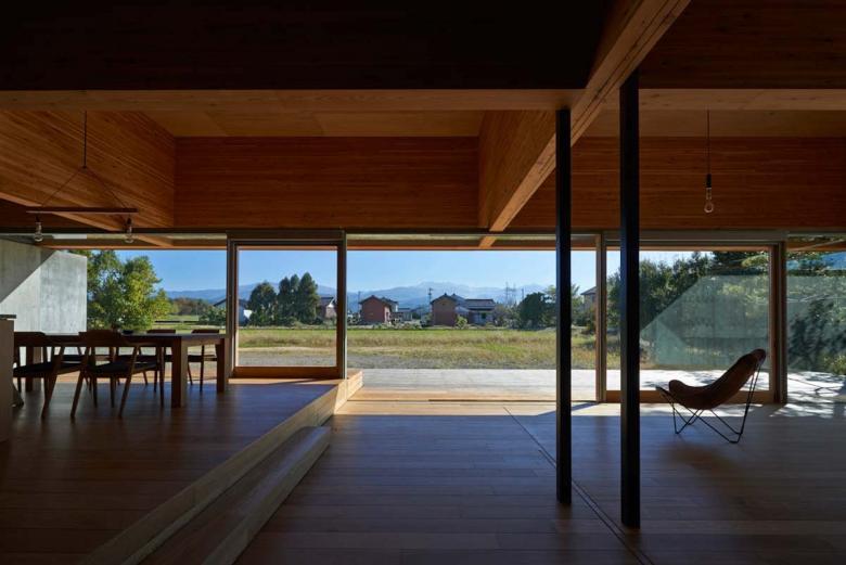 その恵まれた周辺環境へと閉かれた伸びやかな空問と家族の親密な繋がりを育むように程よく閉じた空問。その性格の異なる2種類の空問が重なるような平面構成を求めた。