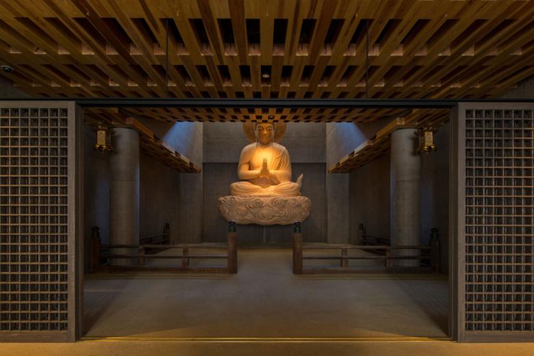 その暗い最奥部には木彫りの大仏が据えられているが、それは雲の上に乗り、地についていない。これは遠く浄土の世界から雲に乗って「来迎」したことを示しているそうだ。来迎によって人界にまで浄土が延長されてくるのだろう。私たちが今回行いたかったこともそれに近い。かつて祖母に連れられて行った、いずれ還っていく自然としての「山」を都市に「来迎」させることを願ったのだ。それは当然「山」そのものではないけれど、大仏という徴(しるし)と同様に、都市に山をつなげ、人々にそうした人間存在の有り方を思い出させる。こうした都市の風景を作り出すことに、新しい都市型の寺/墓地の公共性の意味を重ねたのである。