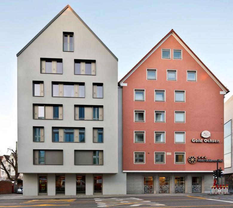 Das traditionsreiche Hotel zwischen Münsterplatz und Neuer Mitte gehört zu den ältesten Gebäuden der Stadt. Selbst Mozart soll hier schon einmal übernachtet haben. Mit einem Umbau und Anbau sowie einer Fassadensanierung sollte die historische Ulmer Herberge dem Zeitgeist und seinen Ansprüchen angepasst werden – mit Lobby, neuer Küche, Konferenzraum, Wellnessbereich sowie einer Erweiterung der Gästezimmer. Ein umfangreiches Projekt, das wir in nur 24 Monaten im laufenden Betrieb realisiert haben. Damit das Hotel zu keiner Zeit schließen musste, gab es zwei Bauabschnitte: 1. Neubau des Anbaus sowie 2. Komplettsanierung des Bestandsgebäudes.