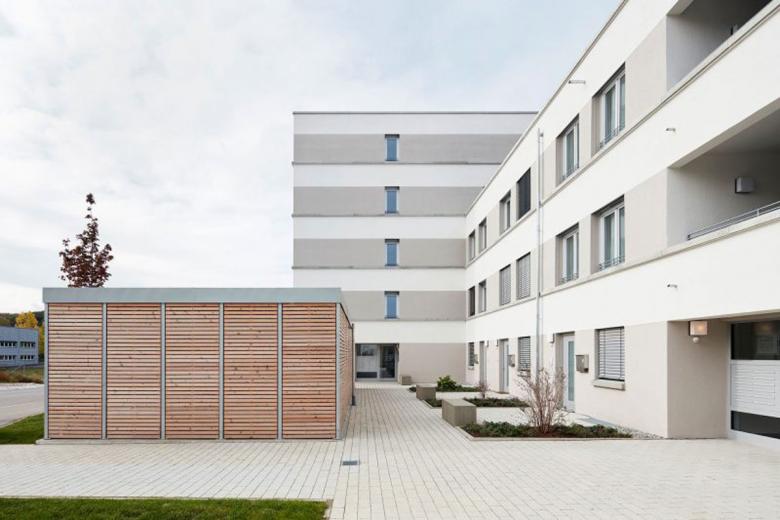 Das Quartier greift den Wechsel der städtischen Topologie in Maßstab und Nutzung auf und versteht sich als Bindeglied zwischen den bestehenden Wohnstrukturen der Stadt Blaustein in Richtung Norden und Gewerbeflächen in Richtung Südosten. Dies zeigt sich vor allem in der punktartigen Bebauung im Norden und mehrgeschossig zum Südosten.