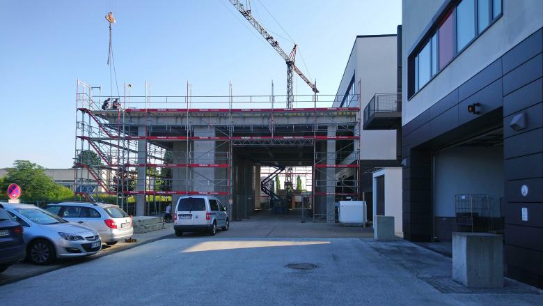 Die Erweiterung des Operationsbereiches erfolgt auf Ebene 1. Obergeschoss an der Westseite des bestehenden OP-Traktes. Die vorhandenen Flure werden konsequent aufgenommen und in die Erweiterung geführt. Der Anschluss an den Sterilflur ist gegeben, die knappen Lagerflächen für das Sterilgut können angepasst werden. Herzstück der OP-Erweiterung ist der Hybrid-OP mit einer Gesamtfläche einschließlich Schaltraum und Einleitung von ca. 120 m². Eine Belichtungsmöglichkeit mit Tageslicht ist im Hybrid-OP nicht gewünscht. Der Neubau des OP-Bereiches erfordert eine aufwändige Aufständerung. Die Anlieferung auf Ebene UG 1 muss überbaut werden. Der sogenannte „Tisch“ liegt ca. 8,50 m über dem Geländeniveau und ist konstruktiv Erdbebensicher und Feuerbeständig herzustellen. Die Ver- und Entsorgung des Krankenhauses muss während der gesamten Bauzeit in vollem Umfang erhalten bleiben.