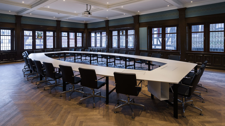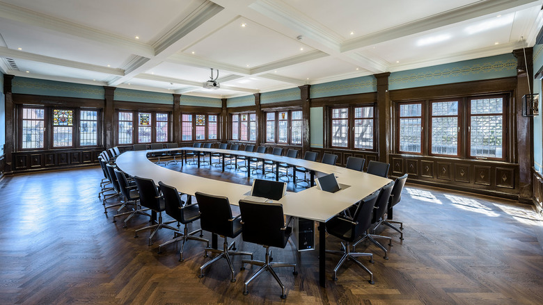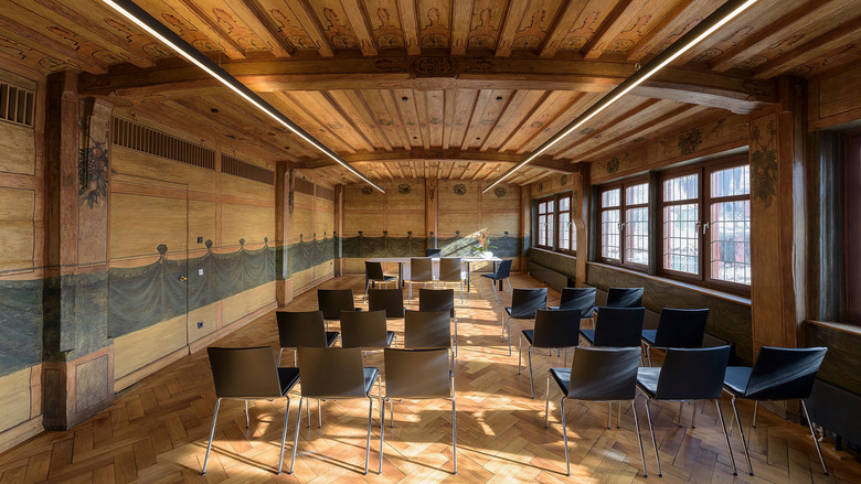 Der historische Hofgerichtssaal wurde wiederhergestellt. Ratssaal, Öhrn und Trauzimmer gliedern sich nach der sorgfältigen Restaurierung nun räumlich in das moderne Dienstleistungsangebot des historischen Tübinger Rathauses ein.