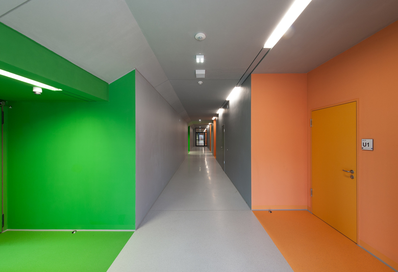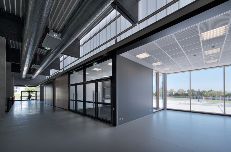 Die Sportler haben einen separaten Eingang an der Südostseite erhalten, welcher direkt auf Sporthallenebene angelegt ist. Der Sportbetrieb ist somit unabhängig von der Besucherebene durchführbar.