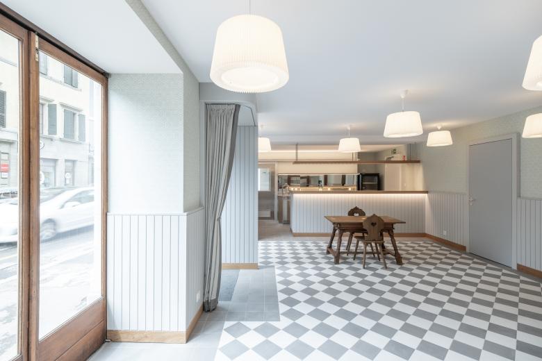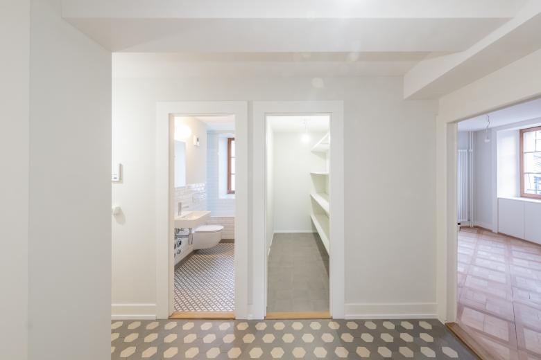 Transformation et assainissement des appartements, du kiosque et du restaurant de la Cléf: Le principe d'intervention consiste à trouver le meilleur ratio entre conservation de la substance historique, durabilité de l'intervention et ceci dans un meilleur rapport coût-qualité.