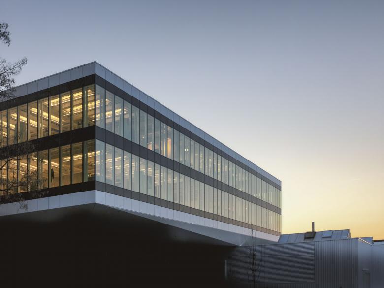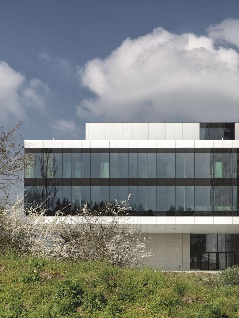 Der Innovations-Campus – Der CUBIC bildet den Knotenpunkt des Bühler Innovation Campus. Zweigeschossig liegt der Stahlskelettbau auf den bestehenden Versuchshallen und dem neuen Zugangskern. Von der zentralen, 50 × 50 Meter messenden Grundfläche aus führen Verbindungsbrücken zu den Hochhäusern sowie zum Customer Center.