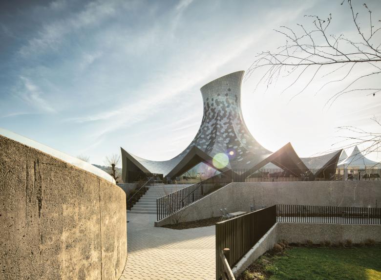 Magische Ausstrahlungskraft – Knies Zauberhut versinnbildlicht die Welt der Magie. Im Herzen von Knies Kinderzoo errichtet, erinnert die luftige Gestalt des emporgefalteten Baukörpers an ein Zaubertuch oder Zirkuszelt. Zuschauerinnen und Zuschauer wollen hier das Exotische entdecken – eine Erwartung, die durch die orientalische Anmutung der Formensprache verstärkt wird.