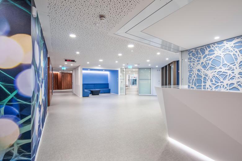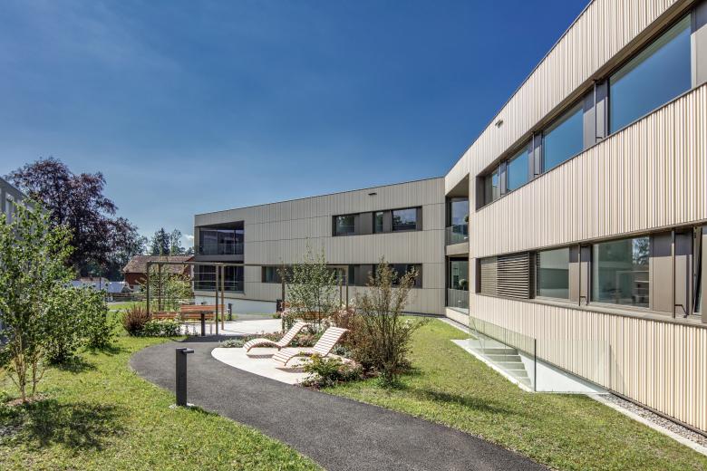 Eine Klinik wie ein Hotel – Als Teil der Erweiterung des neurologischen Rehabilitationszentrums konzipiert, erfüllt das Klinikgebäude sowohl die hohen medizinischen Anforderungen als auch die Ansprüche an Komfort, Service und Ambiente für nationale und internationale Privatpatienten.