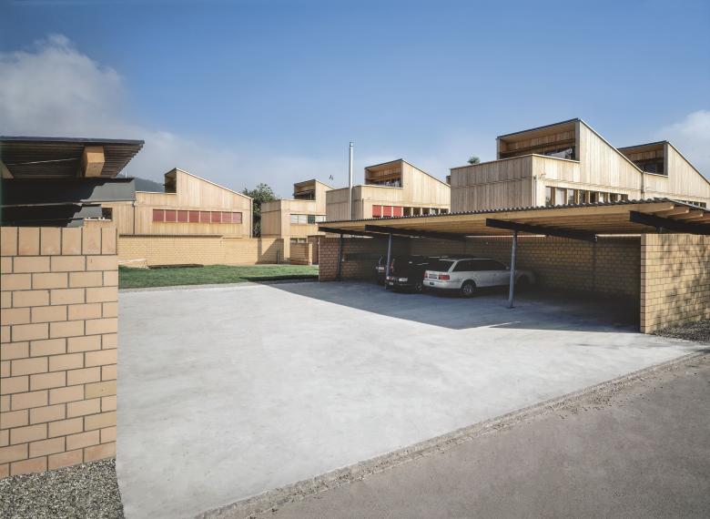 In der Siedlung Prosa liegen 14 Doppelhaushälften hufeisenförmig um einen gemeinsamen Hof. Sie zeichnen sich durch ihre wirtschaftliche Bauweise aus. Zur Vereinfachung beruht jedes Gebäude auf einem Ein-Meter-Raster. Dank Vorfertigung der Holztafelelemente gelang es, die Hauptstrukturen innerhalb von nur acht Tagen aufzurichten. Erstmalig in der Schweiz kamen Brandwände aus Holz zum Einsatz. Die einheitliche Bauweise, die harmonisch getaktete Anordnung und die beschwingten Baukörper mit Pultdächern erzeugen eine rhythmische Architektursprache.