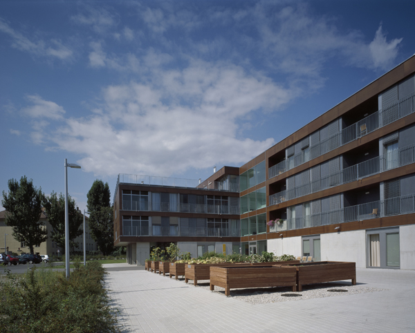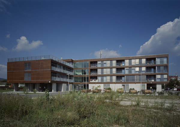 Das im Jahr 2007 errichtete und fertiggestellte Gebäude wurde mit Ausnahme des im Massivbau errichteten Erdgeschosses, in teilvorgefertigter Holzriegelbauweise hergestellt.