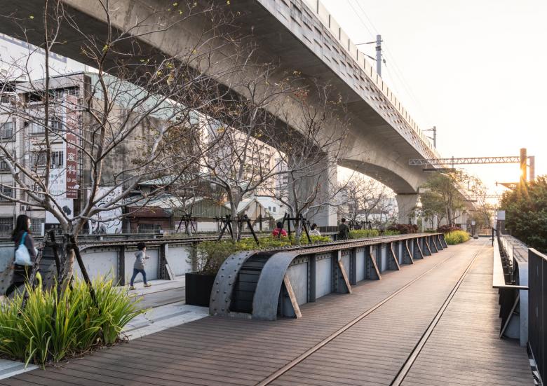 The 1.7km long former railway line crossing downtown Taichung was an important catalyst for the development of the old city. The railway’s historical value plays an important role in the revitalisation of the urban realm on which it sits. Although in the past the rail line functioned as way of connecting people, the disused railway acts more as a barrier due to its challenging location on the dyke, which impedes circulation from one side of the tracks to the other.