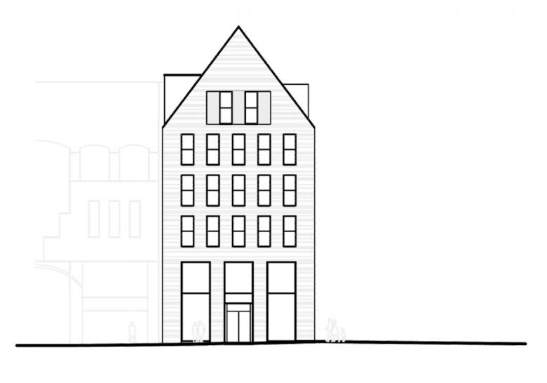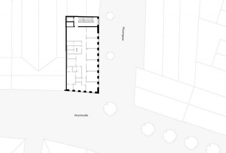 Das Umfeld in der Hirschstraße ist geprägt durch die Mischung verschiedener Stile und Materialien. Nach historischem Vorbild gebaut, wollten wir einen markanten städtischen Baustein setzen.
