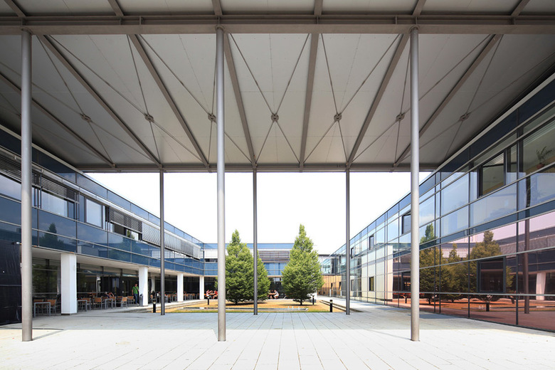 Besonderheiten und technische Innvoationen: Weit gespannte Flachdecken, Hoch installierte Gebäudeteile, Optimierte Aussteifung unter besonderen Randbedingungen der Haustechnik und Elektroinstallation.
