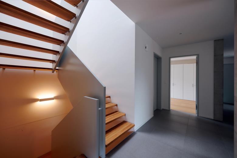 Das bestehende Wohnhaus in Unterseen war in die Jahre gekommen und bot wenig erhaltenswerte Substanz. Die Eigentümer haben einen zeitgemässen Ersatzneubau erstellt, welcher die Parzelle optimal nutzt und eine innere Verdichtung erzeugt. Die Parzelle ergab genügend Spielraum, um zusätzlich zur Einheit für die Besitzer eine Mietwohnung zu realisieren.