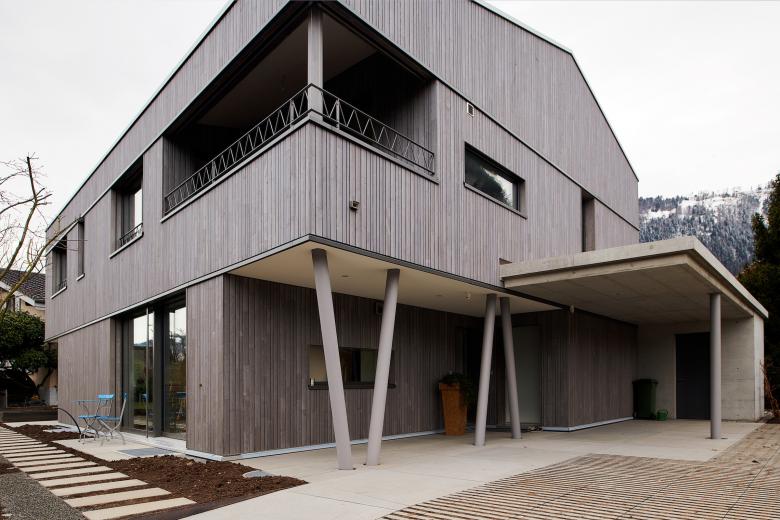 Als Konstruktions- und Dämmelement der Aussenwände wurde ein Holzelementbau mit mineralischer Dämmung ausgeführt. Die äusserste Schicht besteht aus einer hinterlüfteten, silberfarbenen Tannenschalung. Wohnungstrennwände und Geschossdecken sind in Massivbauweise ausgeführt. Die Wärmeerzeugung erfolgt über eine Luft-Wasser-Wärmepumpe. Auf der südlichen Dachfläche ist eine Indach-Photovoltaik-Anlage für die Stromversorgung eingebaut. In den Wohnungen wird die Wärme über eine Fussbodenheizung verteilt. In den Nasszellen wird die verbrauchte Luft mittels Einzellüftungsgeräten abgesogen.