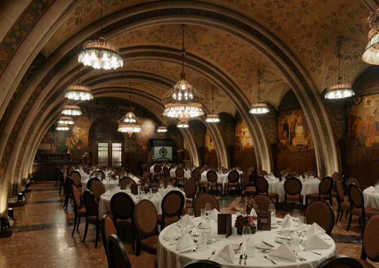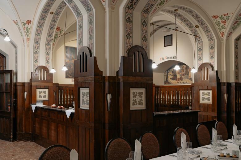 BWM haben nun die großteils denkmalgeschützten Räumlichkeiten revitalisiert – „Uns ging es darum, die ursprüngliche Substanz wieder hervorzuheben und an die Intensität der Gestaltung Joseph Urbans anzuschliessen. Wie bei all unseren planerischen Gedanken geht auch diesem Projekt eine genaue historische Analyse voraus“, führt Erich Bernard, BWM Designers & Architects die Herangehensweise aus. Der Wiener Rathauskeller ist ein komplexes Konstrukt, das trotz seiner sehr verschiedenen Säle auch viele Gemeinsamkeiten in der Gestaltung aufweist. BMW haben diese Elemente – konkret Gewölbe, Lambris, Luster, Spaliere, Malereien, Fenster und das Wappen der Stadt Wien – im Zuge der Revitalisierung nun wieder entsprechend betont.