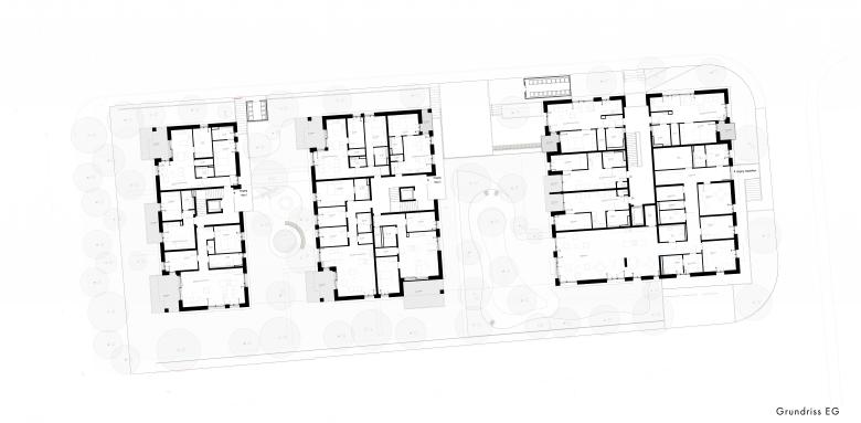 Funktion – Bei den drei Gebäuden handelt es sich um 3-geschossige, kompakte Baukörper (zzgl. Untergeschoss), für die betreuten Seniorenwohnungen mit einem länglichen, in der Mitte liegenden Flur zur Erschließung der Wohneinheiten, der Treppen sowie des Aufzugs. Der Haupteingang des Gebäudes befindet sich im Untergeschoss und wird fußläufig über die Nordseite, von der Talaue aus, erschlossen. Der Zugang zur Garage befindet sich ebenfalls im Untergeschoss.