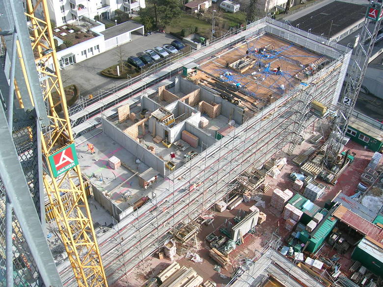 Nagelwänden ausgeführt. Mit einzelnen Eckspriessen wurden die Zonen ohne Nägel gesichert. Die Gebäude sind flach fundiert.