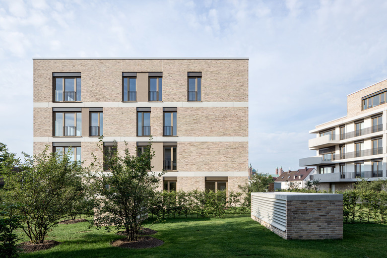 Das Material Ziegel nimmt Bezug auf die ehemals auf dem Areal befindliche alte Ziegelei.
