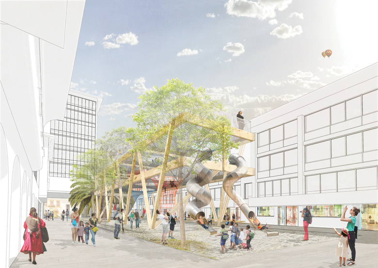 The short-term strategy interests 6 emblematic spaces that are considered as “high priority” interventions; taking account of the inputs received throughout the participative process, a strong character related with use and program is defined for each space. The result consists in 6 projects: The City Lounge, The Social Network, City School, The Active Center, The Tree House, Cuenca Hub.