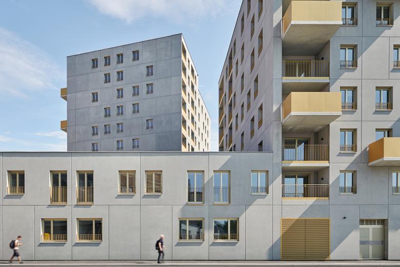 Gibt es Alternativen zur Vollwärmeschutzfassade im sozialen Wohnbau? Ja die gibt es! Gemeinsam mit dem Bauträger Familienwohnbau wagten wir uns im 22. Bezirk in Wien an das Experiment, mit komplett im Werk vorgefertigten Fassadenverbundelementen zu arbeiten. Die Vorteile? Eine perfekte, „ehrliche“ Fassade aus Sichtbeton, eine rasche Bauzeit und eine hohe Präzision auf der Baustelle. In dieser Form ist die Bauweise ein Novum im sozialen Wohnbau in Wien.