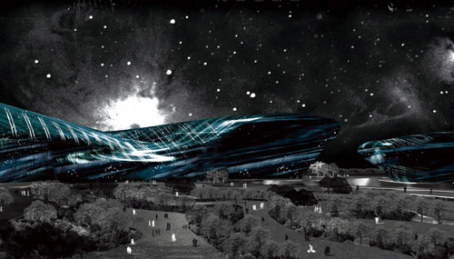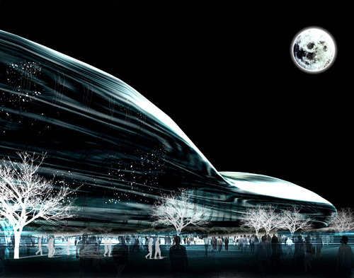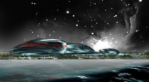 The scheme for the project inspired by two rolling water drops, the building captures the elements of mystery, unpredictability and dynamics. A spectacular and fashionable exterior brings all these ideas to life and creates a strong visual shock. The complex utilizes special design treatment and is covered with annular radiating nebular stripes. Through the unique architectural design the complex is a visual statement of human’s endless pursuit and exploration of science.