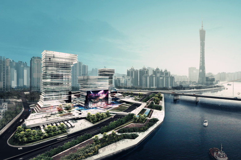 south section of Guangzhou’s new central axis. Lies against the Pearl River on