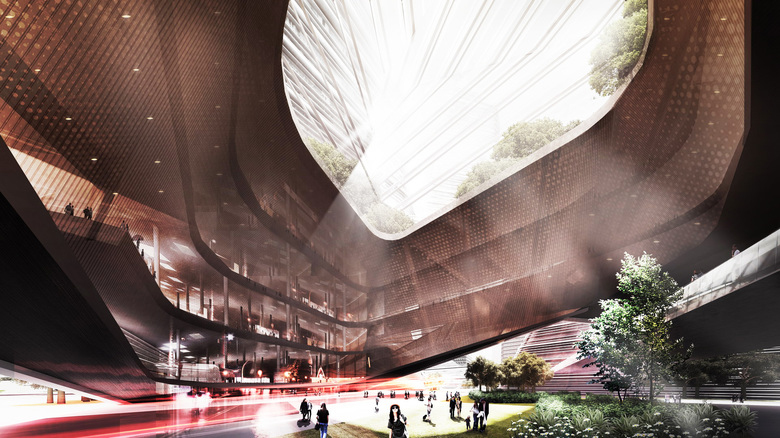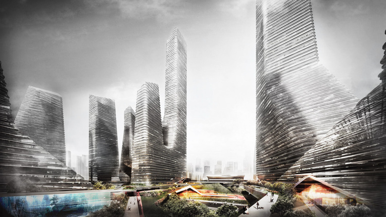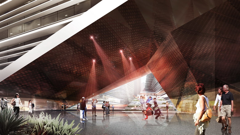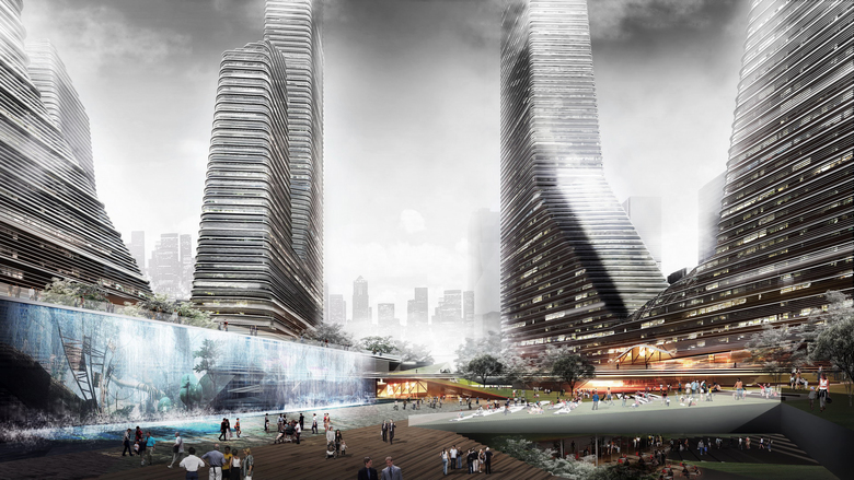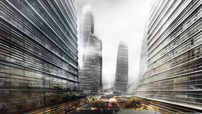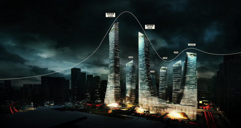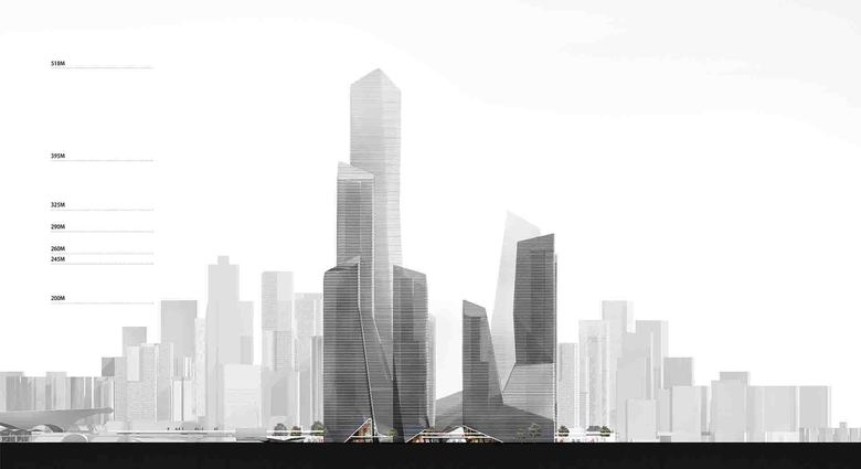 From the concept of “mountain fortification” the design starts from the existing urban design, whilst considering building functionality, layout, height control, and introducing vertical stacking, mixed layouts, sky gardens, and two-story corridors. By carefully integrating building forms, a group of ultra high-rise buildings with a deliberate and powerful shape is finally produced