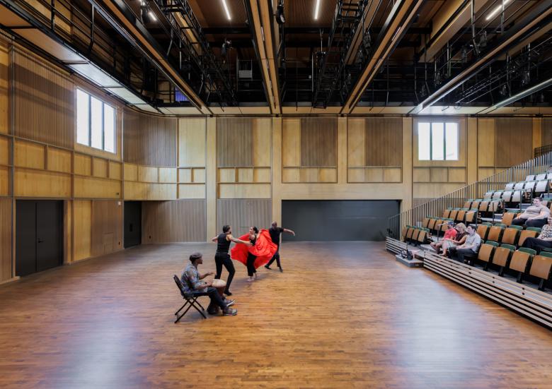 The design allows for multi-use flexibility, so that the building can support performances, events, residencies, and more, sometimes simultaneously. The theatre will seat up to 230 patrons in the main performance space, with an array of seating and stage configurations. The building will feature two lobbies with sliding doors, which will create multiple entrances and exits to the building. The lobby on the west side of the building will serve to welcome visitors in from the spacious artist quadrangle, and will also provide a covered and ventilated space for pre-show talks alongside a new exhibition space.