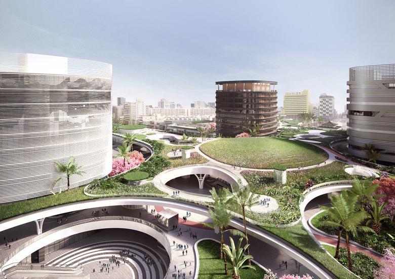 The colonial Japanese station building, which will be relocated to its original site, is embraced by the canopy and symbolically reconnects the old and new Kaohsiung.